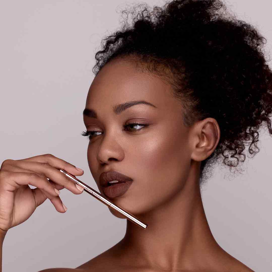 Appliquez le long du contour naturel des lèvres, en commençant par le centre de la lèvre supérieure vers les coins externes, puis répétez sur la lèvre inférieure. Pour intensifier la couleur et prolonger la tenue, appliquez également à l’intérieur du contour.